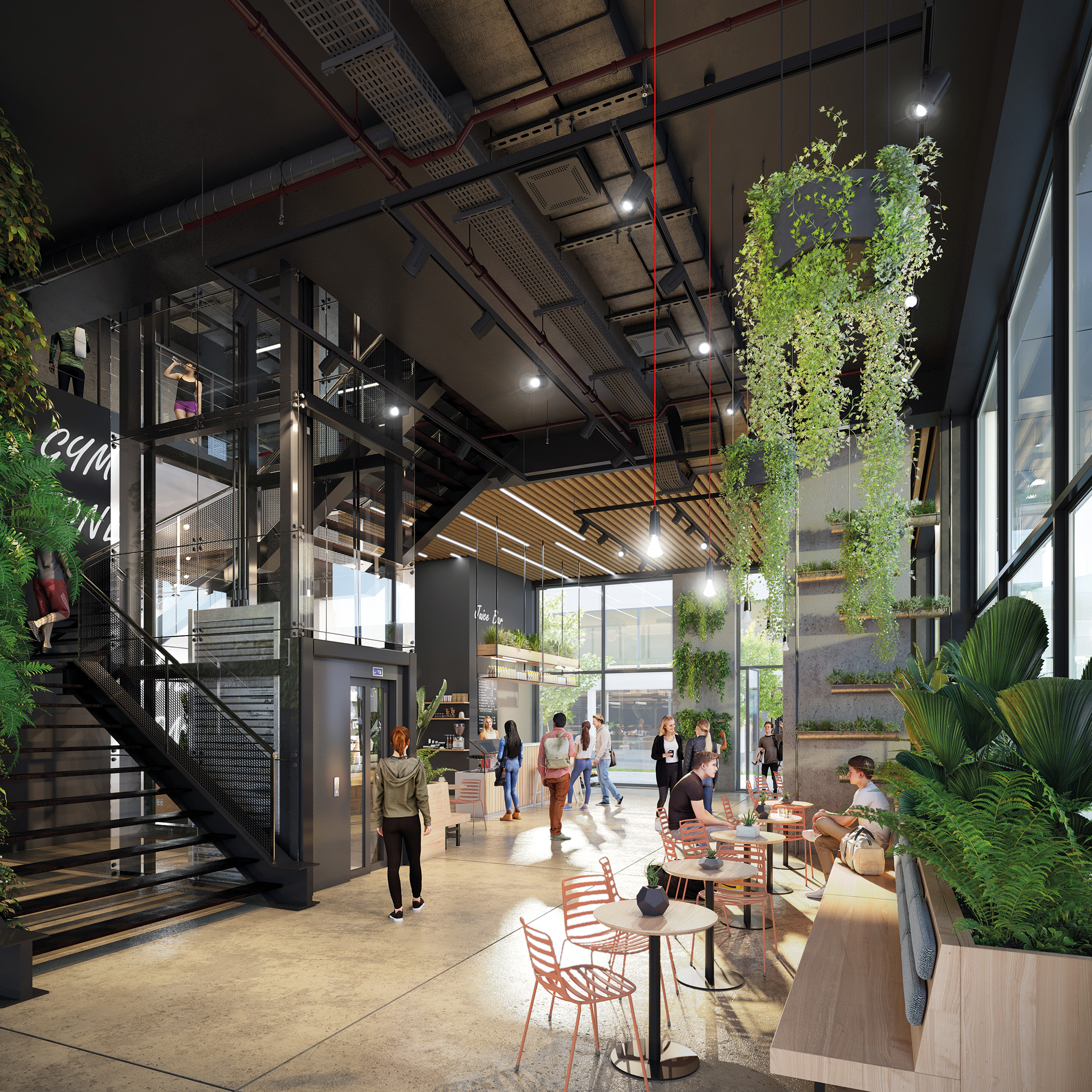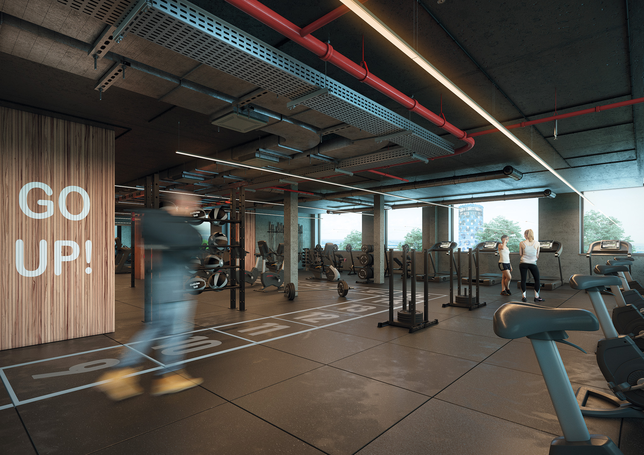 Sporten tijdens de lunch of na het werk om je hoofd leeg te maken? Het kan in The Bridge. Op de begane grond en eerste verdieping is ruimte gereserveerd voor een sportschool van maar liefst 1.400 m².
